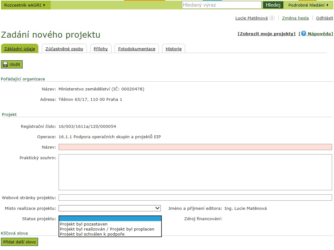 - Lucie Matěnová, lucie.matenova@mze.cz, tel.: 222222222