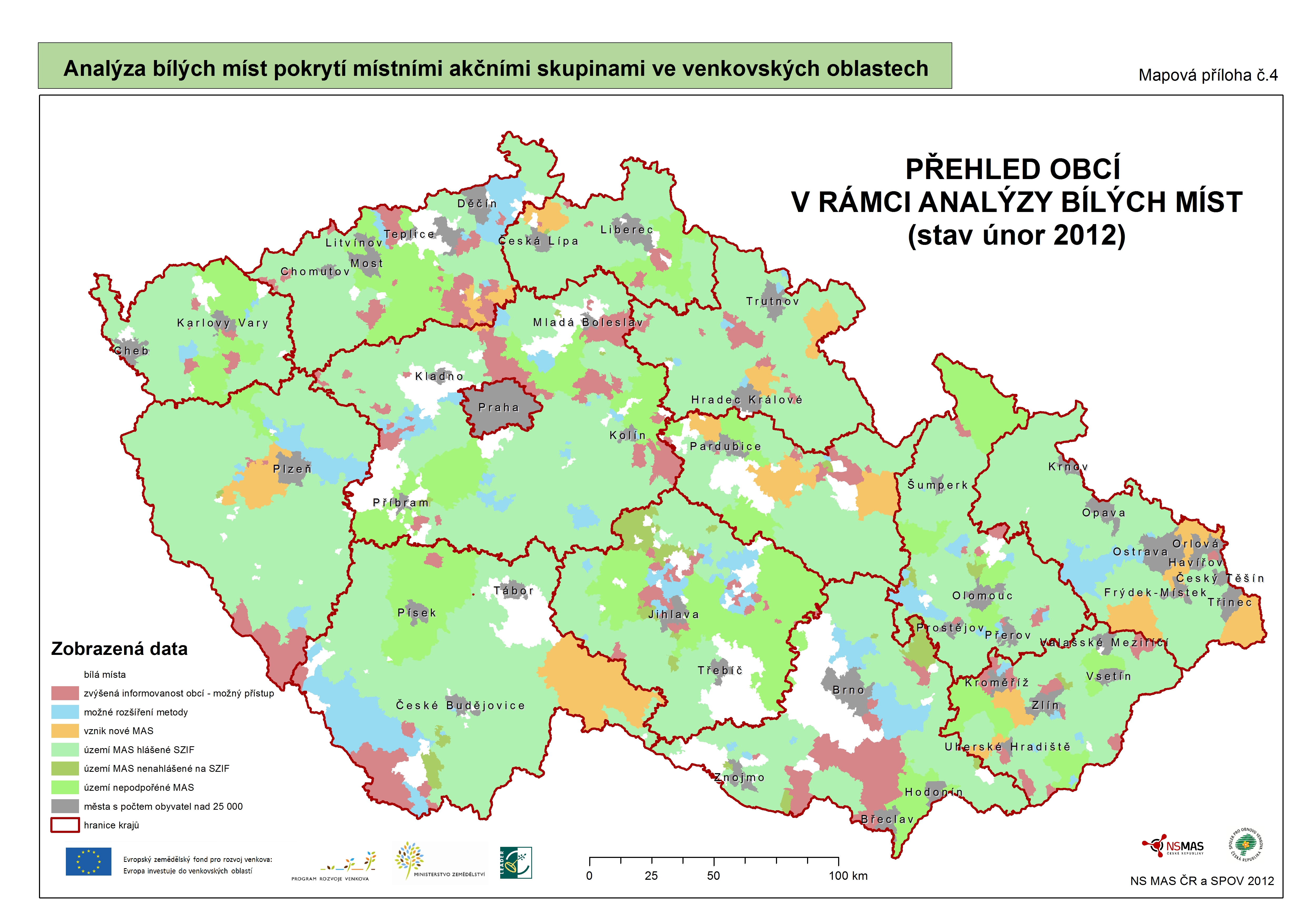 Cílem zpracované analýzy bylo zmapování bílých míst ve venkovských oblastech a potenciál míst, kde místní akční skupiny (MAS) nebyly vybrány k podpoře z Programu rozvoje venkova. Pro dosažení tohoto cíle bylo provedeno šetření, které zahrnovalo informační kampaň na celonárodní, krajské a regionální úrovni. Obce, které nejsou v území MAS, byly informovány o metodě LEADER, jejich přednostech a uplatnění. Byly prezentovány příklady dobré praxe a možnosti zapojení se do MAS.