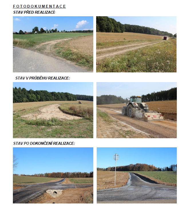 Realizací cesty došlo k propojení polních cest, což umožnilo obslužnost dalších zemědělských a lesních pozemků v katastrálním území současnou zemědělskou technikou.