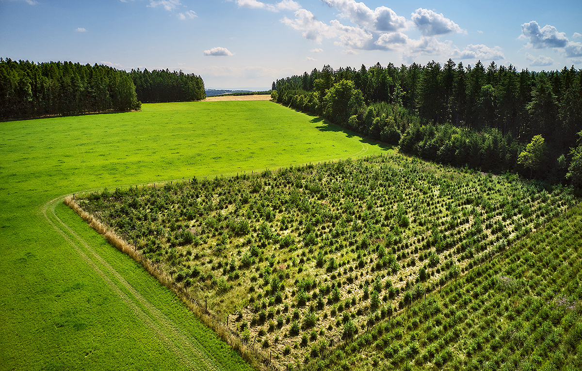 Operace 8.1.1 Zalesňování a zakládání lesů. Cílem je zmírnění klimatických změn zvýšením schopnosti absorpce atmosférického CO2, posílení biodiverzity krajiny rozšířením zalesněných ploch.