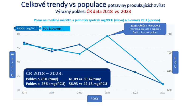 Je z nich patrné, jak dramaticky byla snížena spotřeba těchto velmi důležitých léčiv - antimikrobik - v českém zemědělství.
